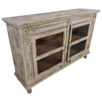 Hergestellt in echter und sehr aufwendiger Handarbeit wird diese Kommode in jedem Raum zum echten Blickfang und zum absoluten Highlight. Die weiße Farbe lässt dabei den Naturton vom Mangoholz besonders gut zur Geltung kommen und kleine Schnitzereien machen diese Kommode perfekt. Außerdem lässt sie sich auch mit anderen Einrichtungsstilen hervorragend kombinieren.